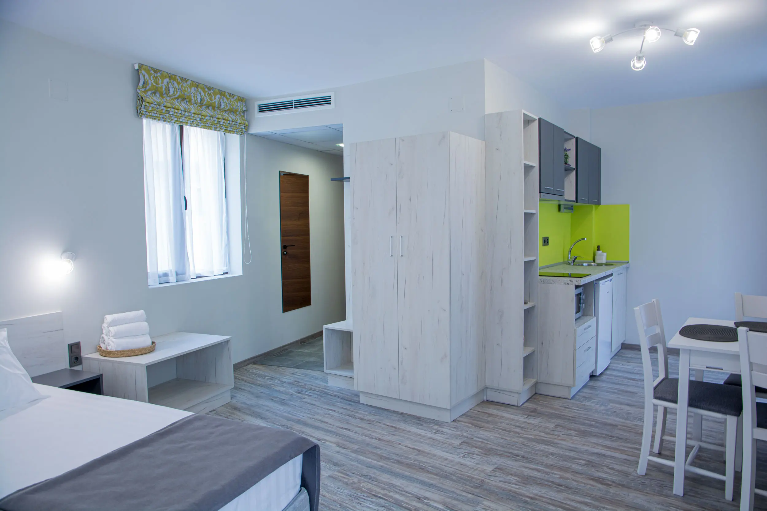 Всяка стая е оборудвана с удобно работно пространство, Wi-Fi връзка, самостоятелен кухненски бокс и всичко необходимо за комфортен престой.