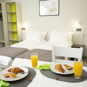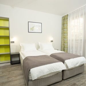 Двойна стая с две отделни легла № 3 Цена от 89 лв./нощувка Описание Удобства WiFi Абсорбатор Дъска Ел. уреди Електрическа кана Климатик Комфорт Котлон Купа Микровълнова Нож Оливерник Посуда Прибори Телевизор Тиган с капак Хладилник Чаши Чинии Gallery